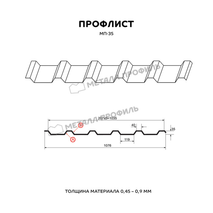 Профлист Металл Профиль МП-35 0,5 Полиэстер RAL 1015 Светлая слоновая кость