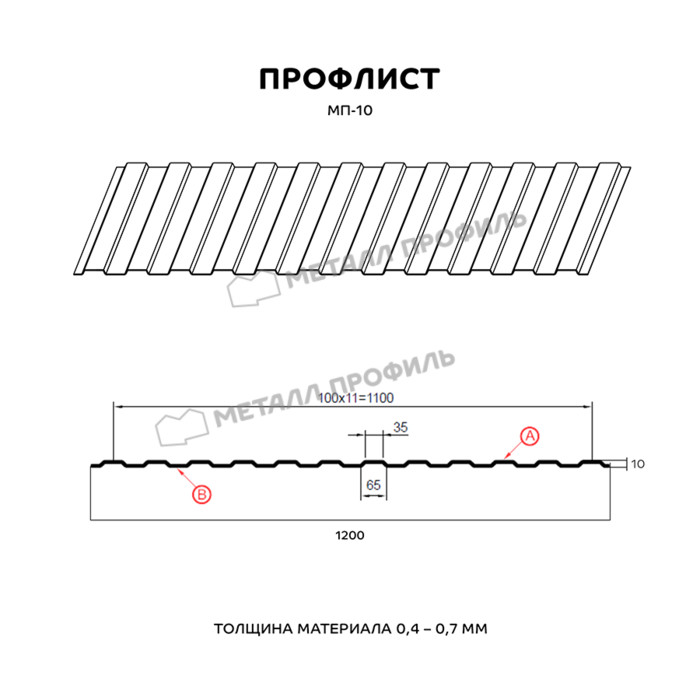 Профлист Металл-Профиль МП-35 Полиэстер 0.45 мм RAL 9002 Серо-белый